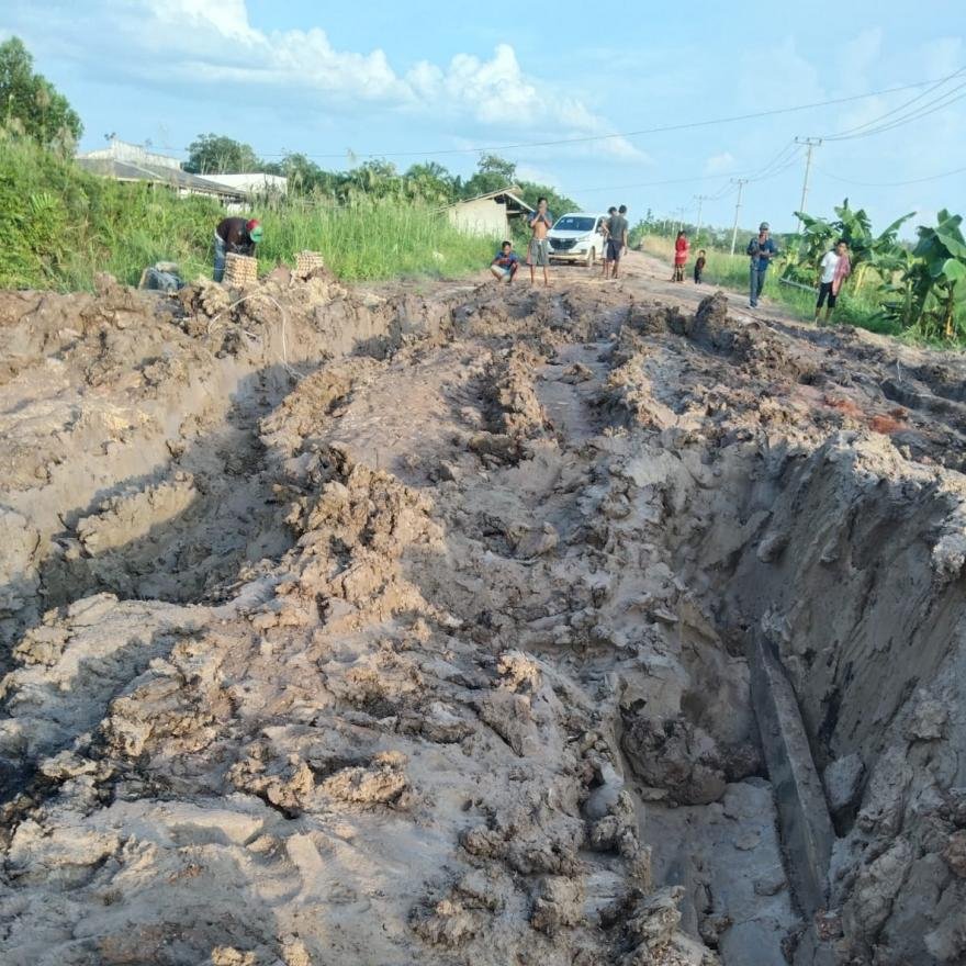 Pada pagi hari terlihat aktivitas masyarakat Desa Sumber yang sangat kesulitan dengan kondisi jalan berlubang pada jalan Poros Desa Sumber Makmur Kecamatan Mesuji Kabupaten Mesuji Provinsi Lampung. Dalam hal ini terlihat ada beberapa kendaraan bermotor dan mobil sulit melewati jalan tersebut sehingga terdapat mobil tidak bisa untuk berjalan.